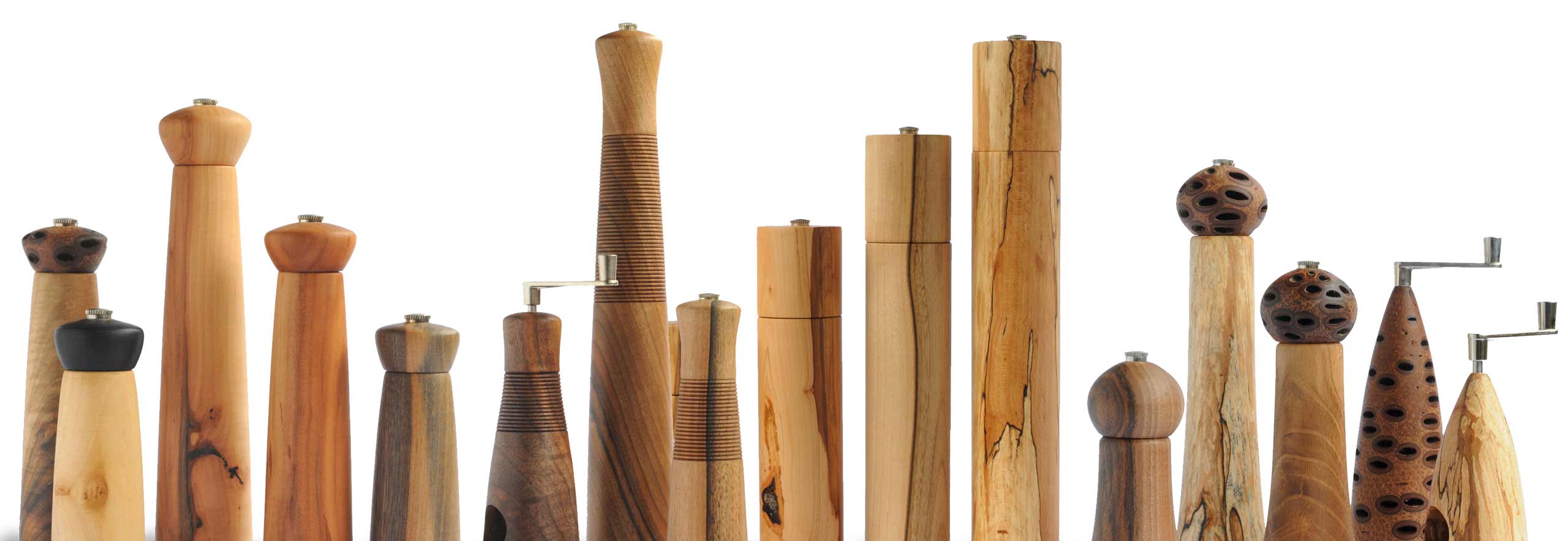 Im Lauf der Jahre haben wir für unsere Gewürzmühlen eine Reihe von „Formfamilien“ entwickelt. Diese kombinieren wir mit der Vielfalt unserer Hölzer und können Ihnen so eine sehr große Bandbreite an Mühlen anbieten. Für jeden etwas. Darüberhinaus sind wir auch offen für Sonderanfertigungen nach Ihren Wünschen.